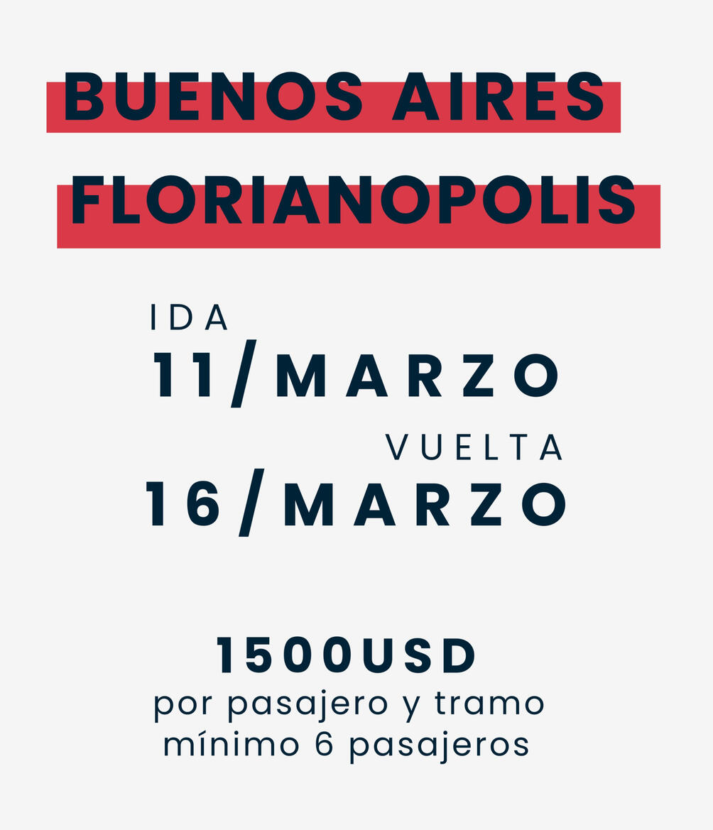 Somos una plataforma que ofrece vuelos charter y empty legs de vuelos privados alrededor del mundo.